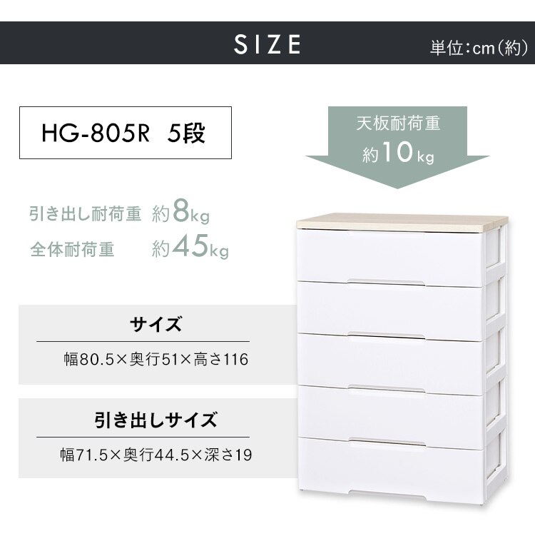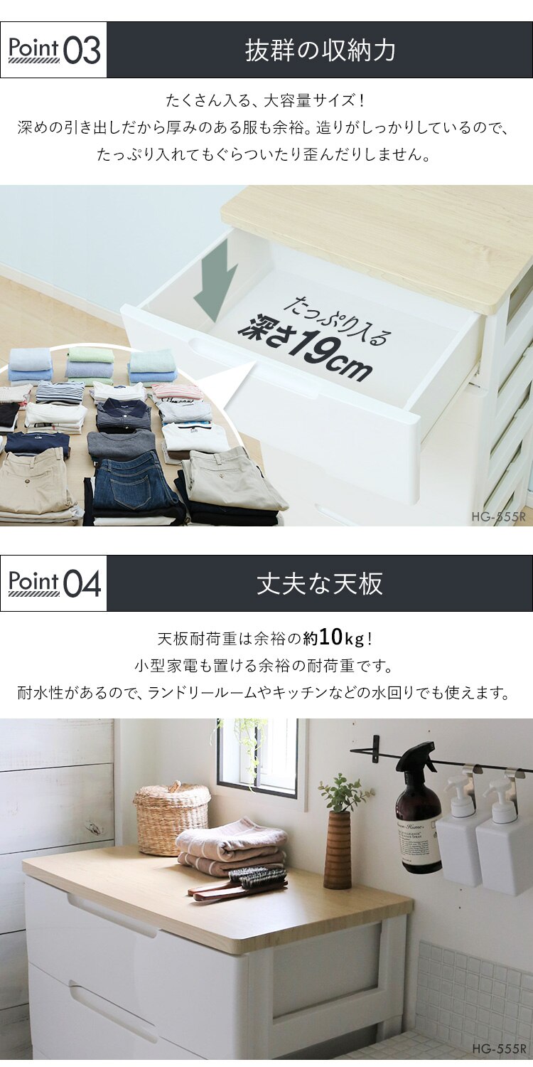 チェスト 4段 組み立て簡単 収納ボックス タンス ウッドトップチェスト HG-804 ホワイト