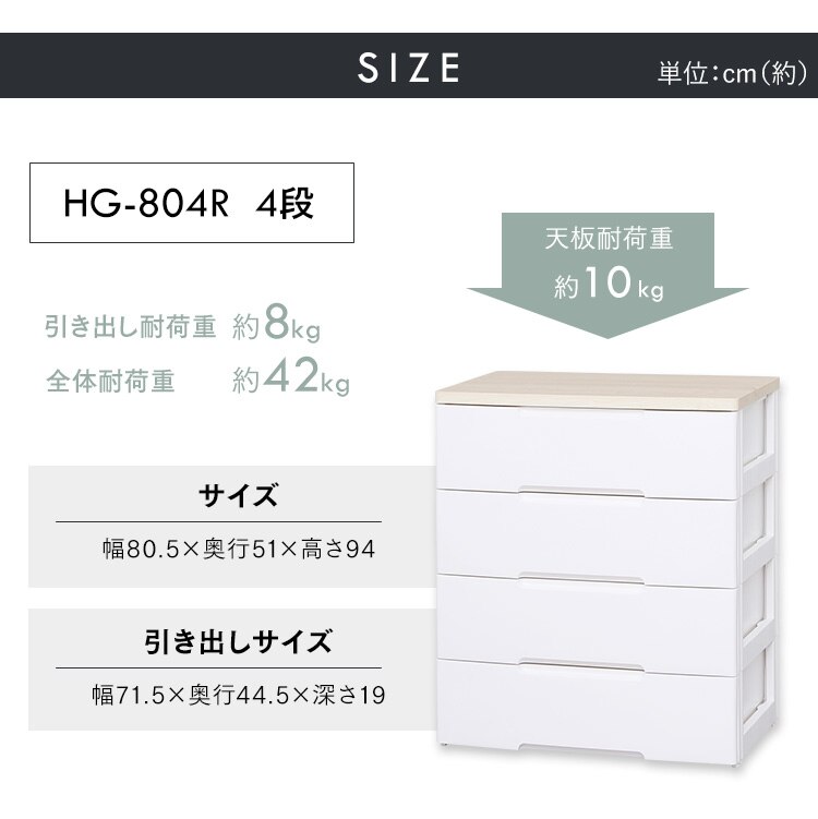 - チェスト 4段 組み立て簡単 収納ボックス タンス ウッドトップチェスト HG-804 ホワイト