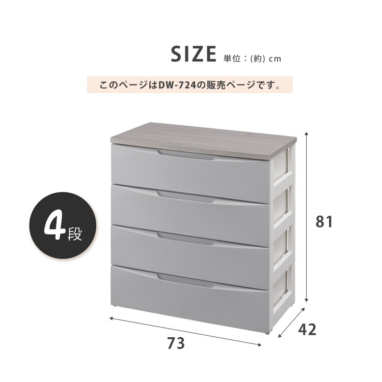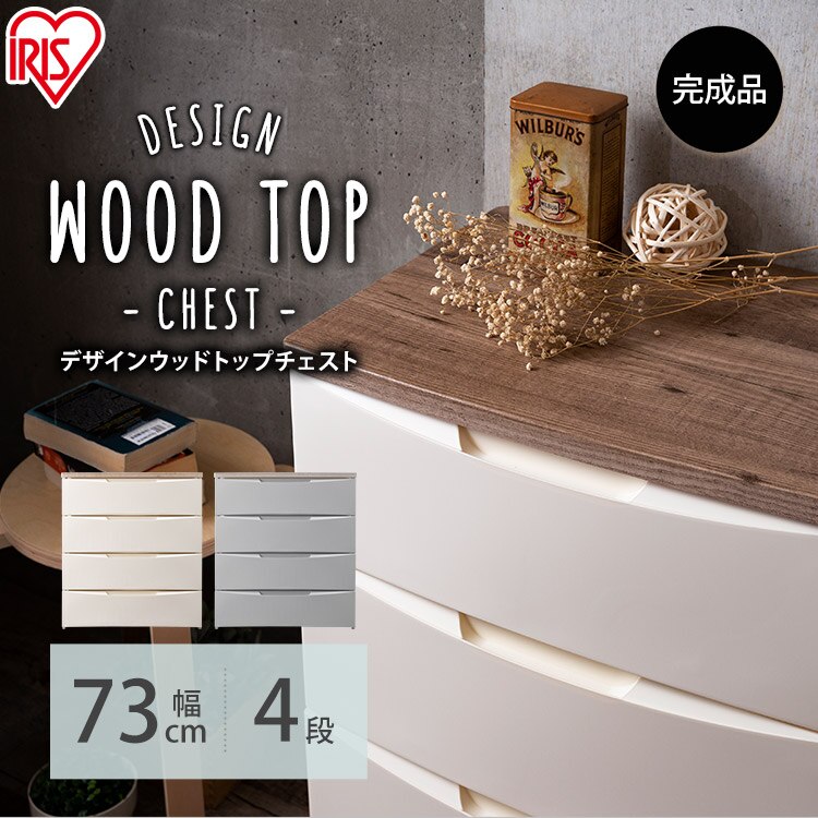 - チェスト 4段 収納ボックス タンス デザインウッドトップチェスト DW-724 グレー