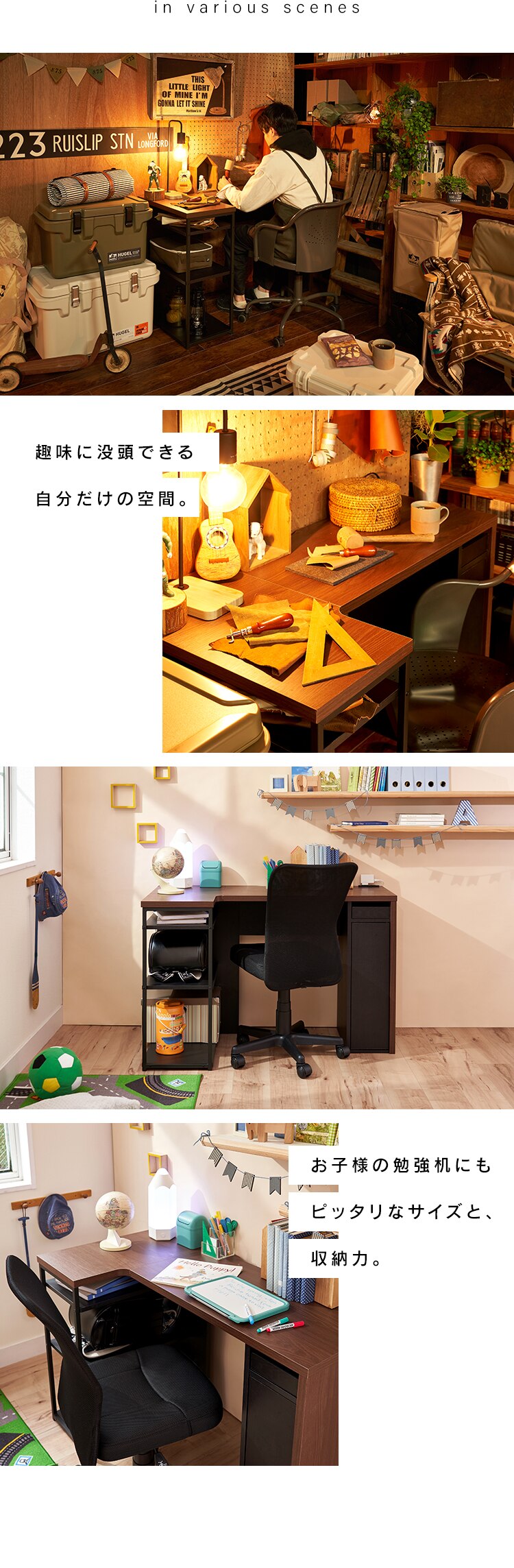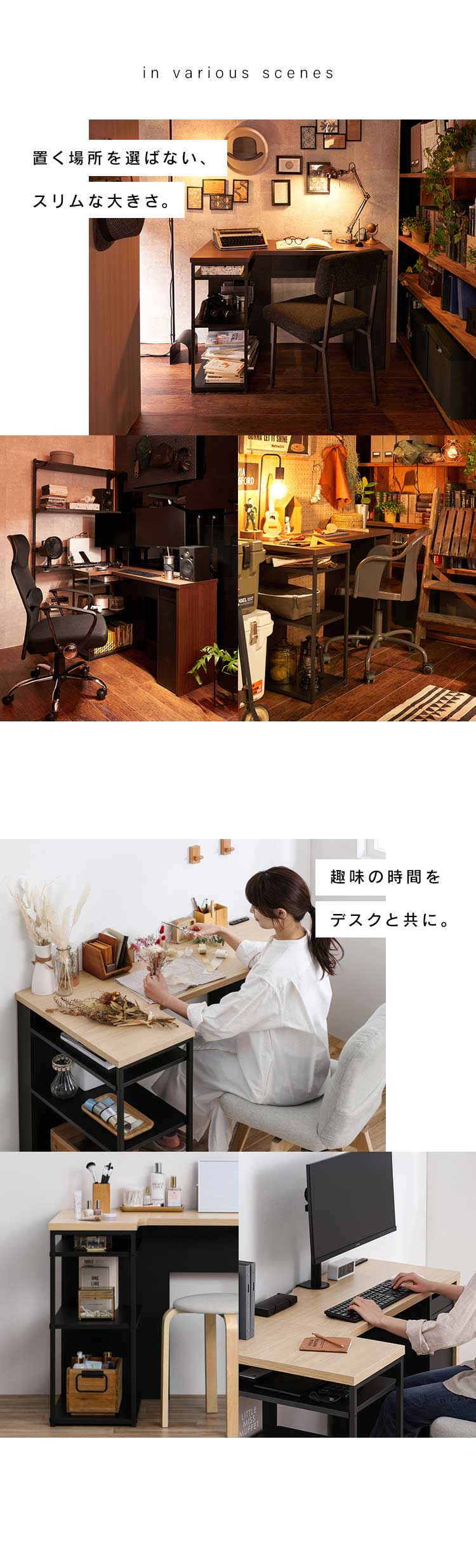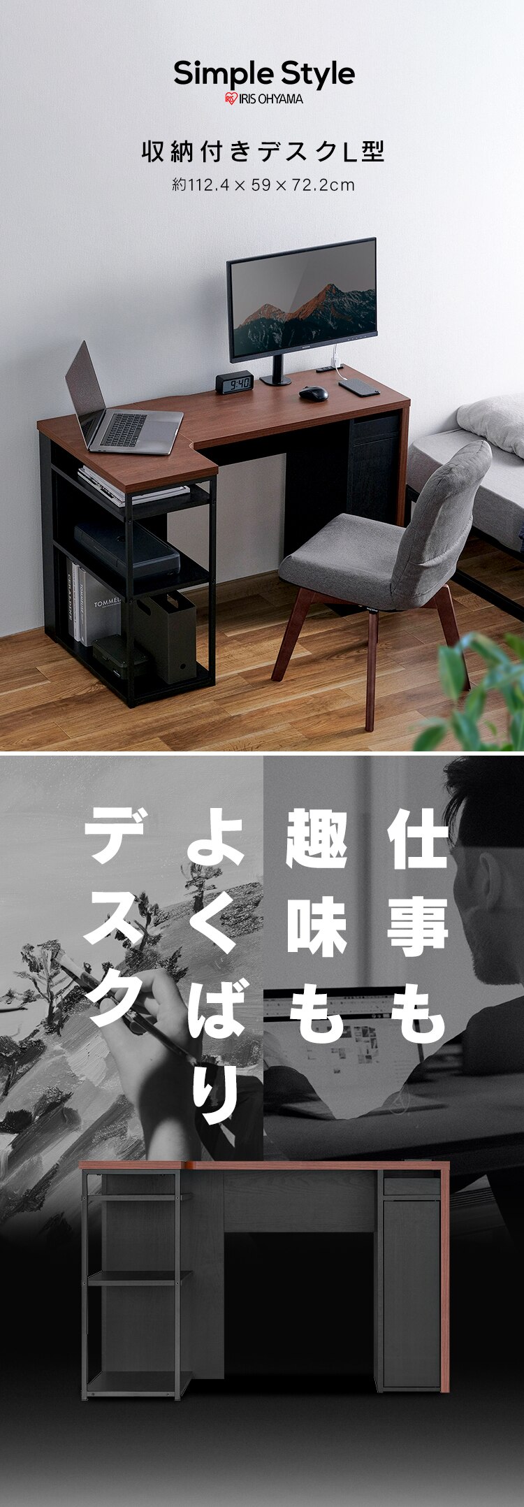 上段:ノートパソコンや書類、材料などの整理に。