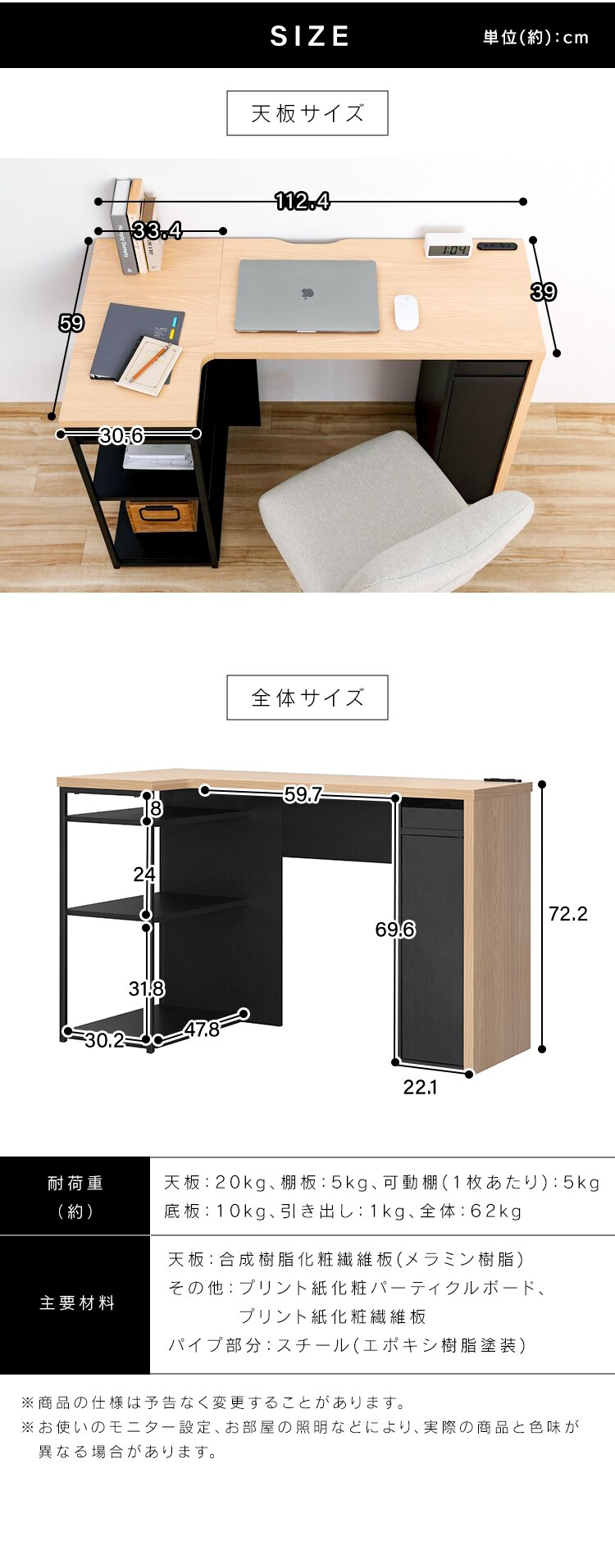 - 種類 : L型 | カラー : ナチュラル/ブラック 購入