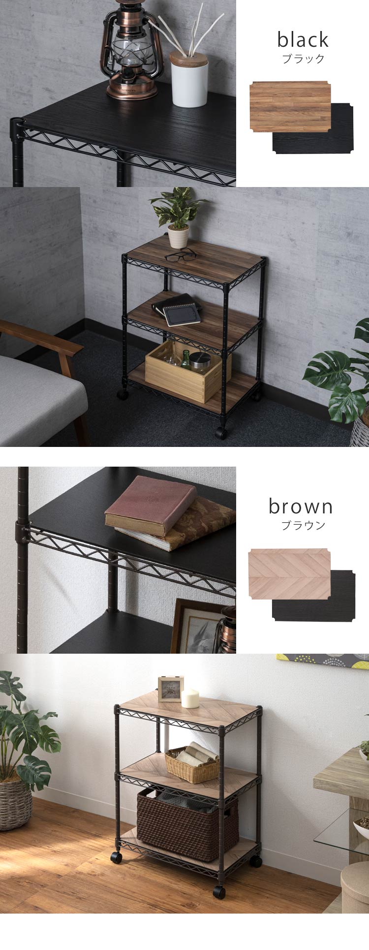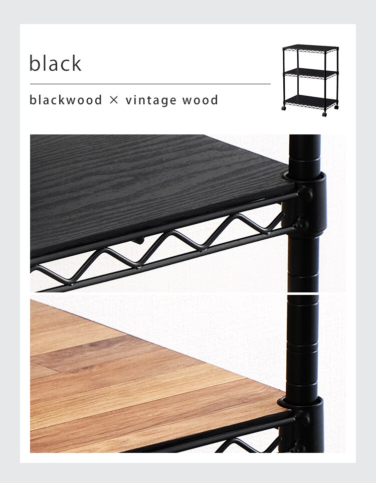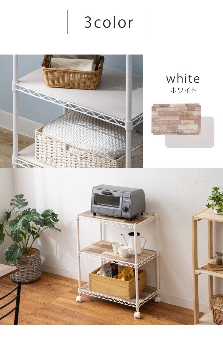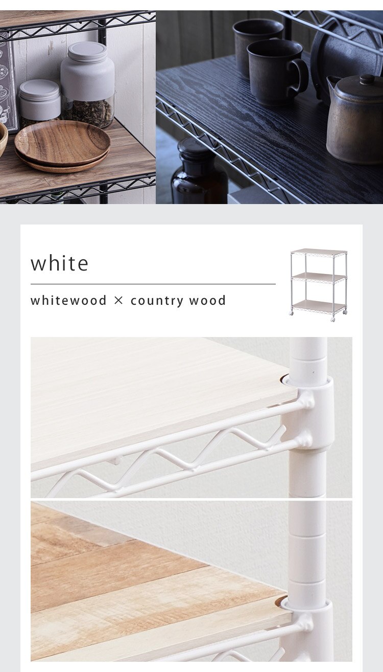 お部屋の雰囲気に合わせて選べる「リバーシブルウッドボート付き」マットカラーのメタルラック。