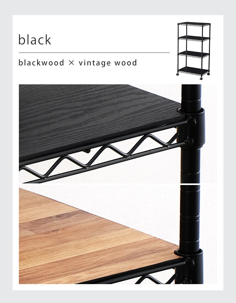 - スチールラック 幅55cm 4段 カラーメタルラック ウッドボード付き CMM-55104B ブラック