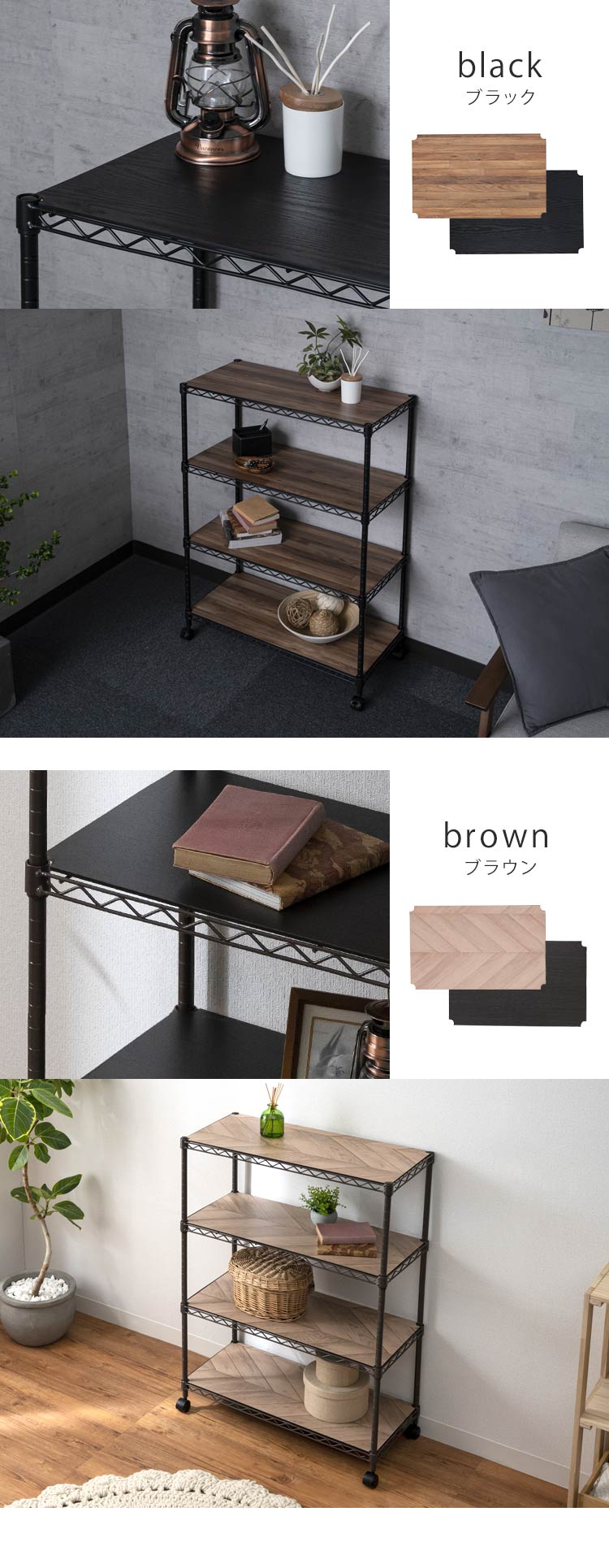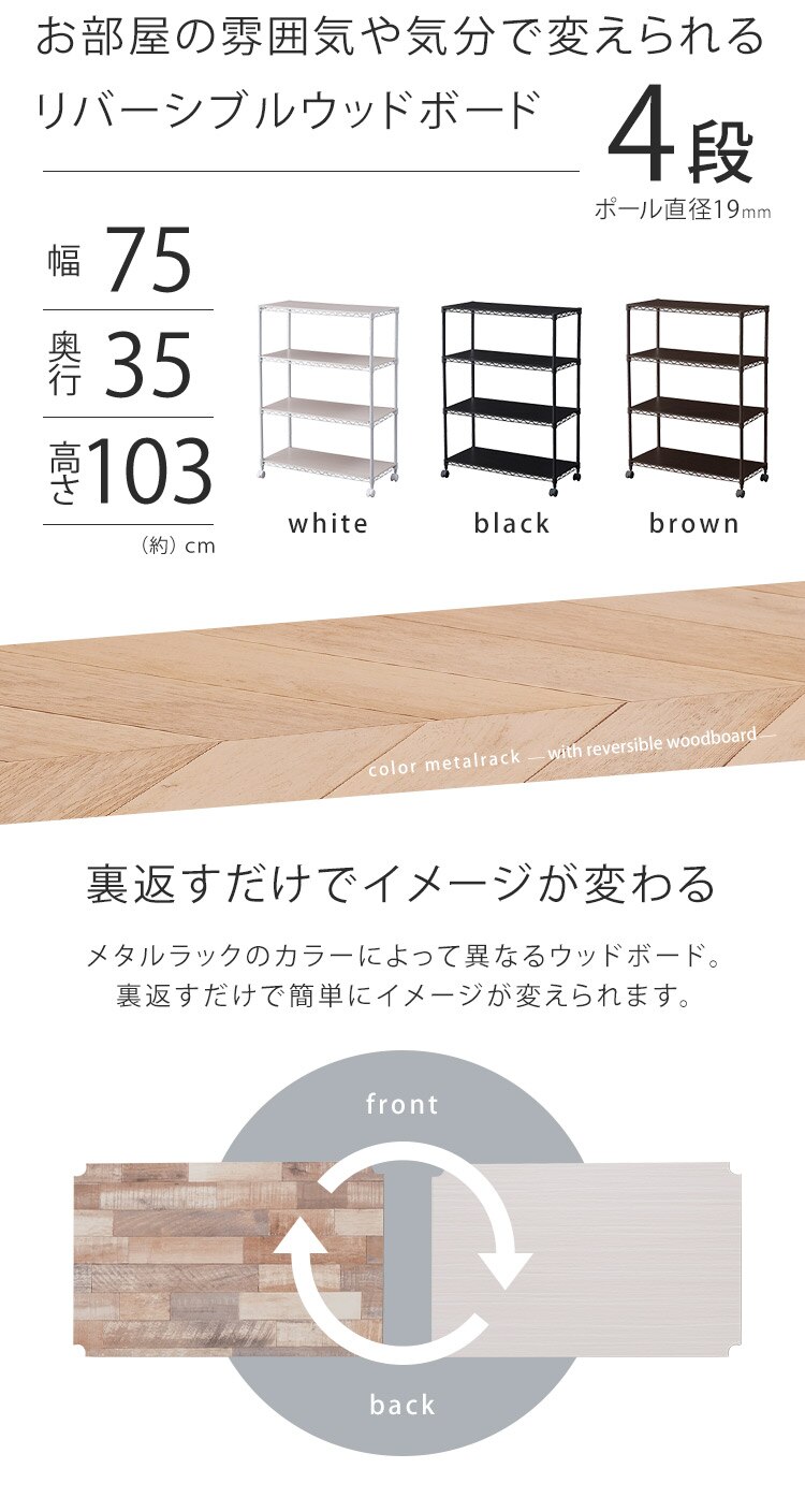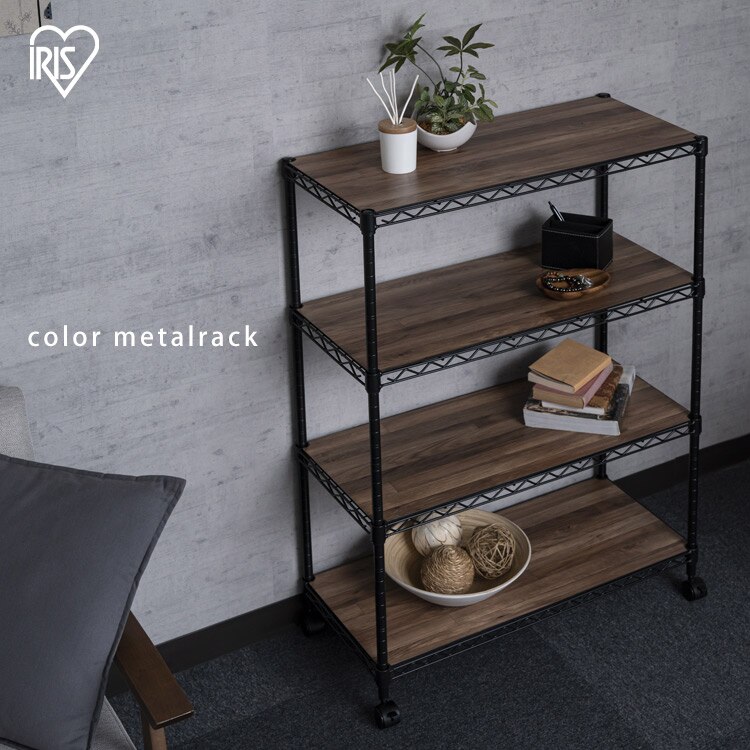 スチールラック 幅75cm 4段 カラーメタルラック ウッドボード付き CMM-75104B ブラウン
