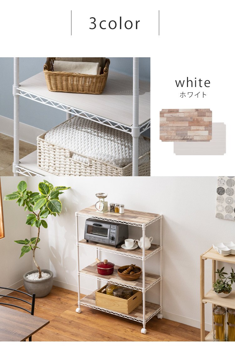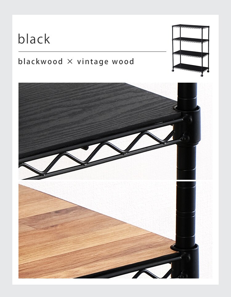 お部屋の雰囲気に合わせて選べる「リバーシブルウッドボート付き」マットカラーのメタルラック。