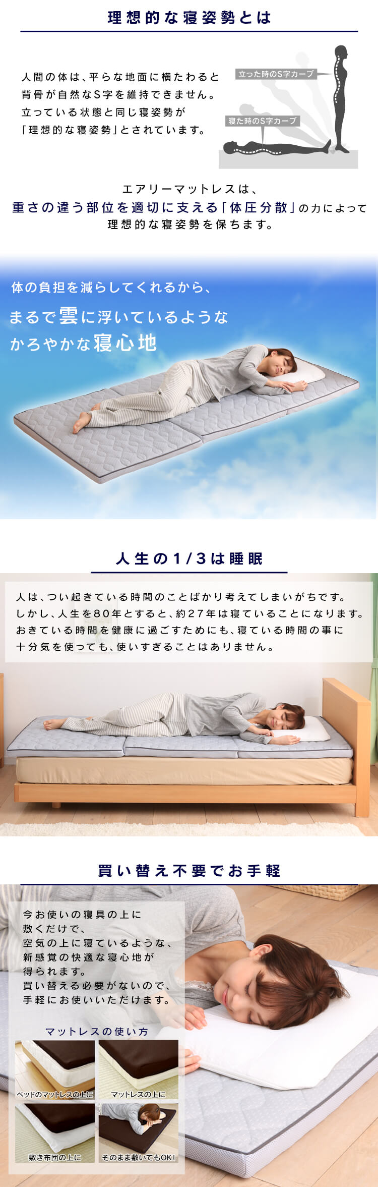 エアリーマットレス エクストラ 三つ折りタイプ AMEX-3S