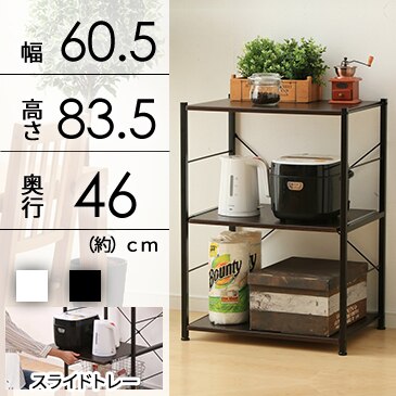 - キッチンが狭いので、カラーボックスくらいの奥行ラックを探していました。こちらの商品は奥行が35cmで、カラーボックスよりは少し大きいですが、カラーボックスよりも見た目がよく、家電が1つにまとめて置けてスッキリしました。スライドトレーに炊飯器を置けて、蒸気を心配することがなくなりました。