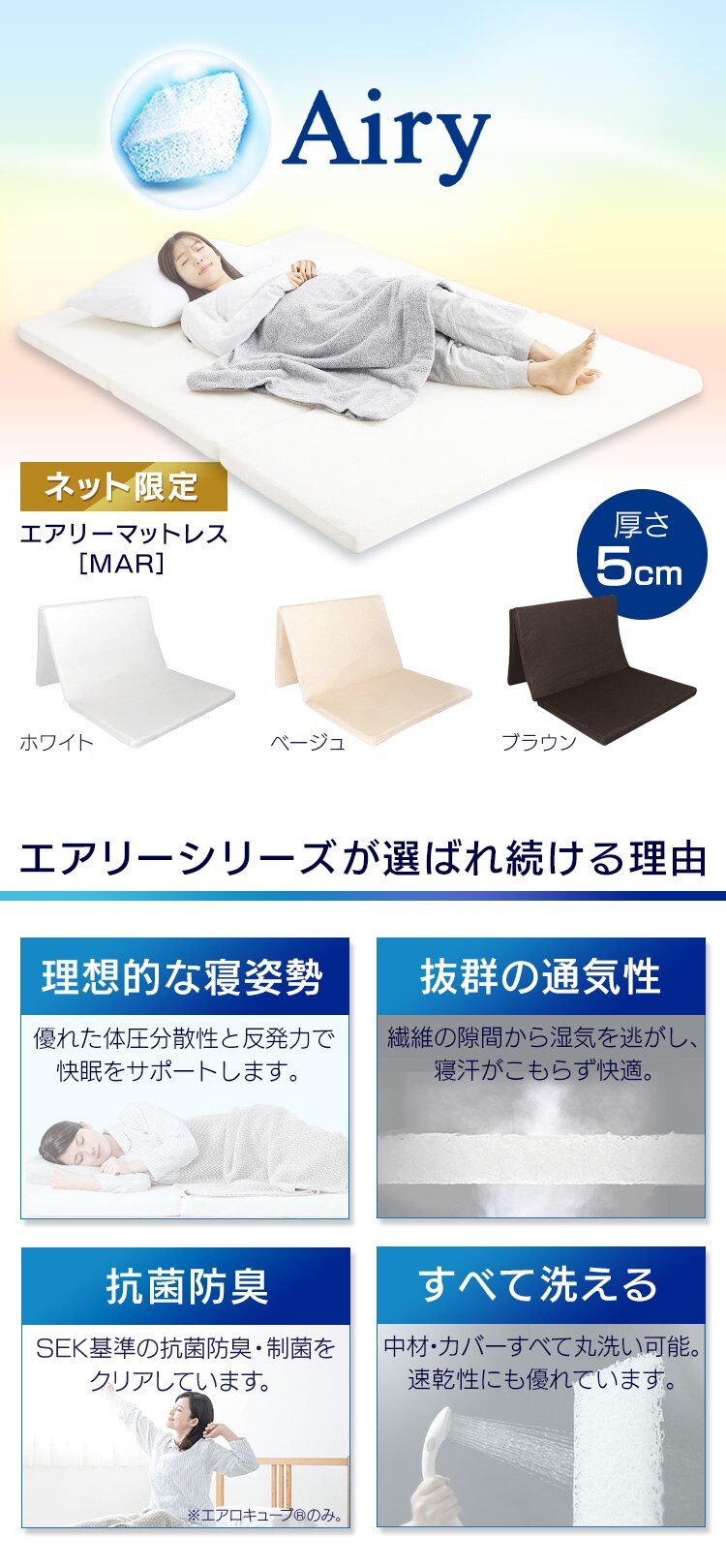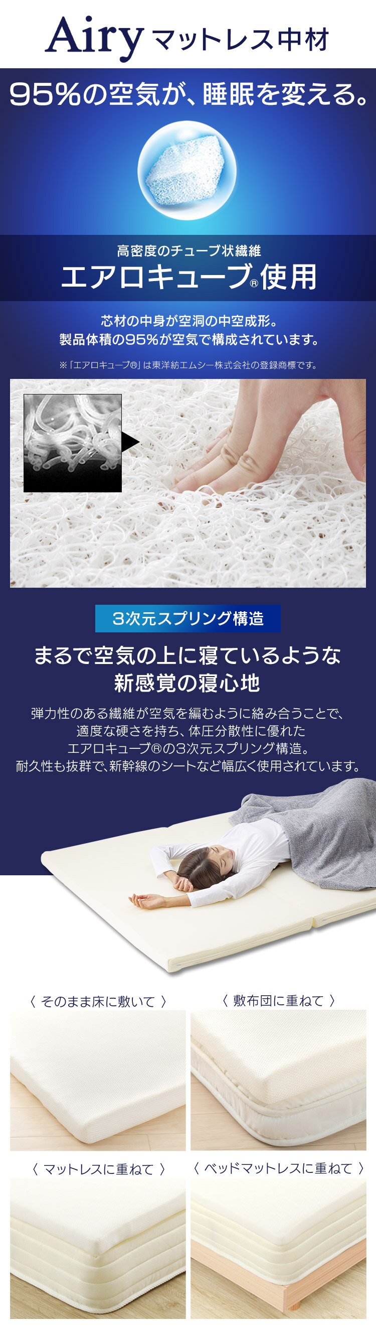 新素材「エアロキューブ(R)」を採用したエアリーマットレスです。