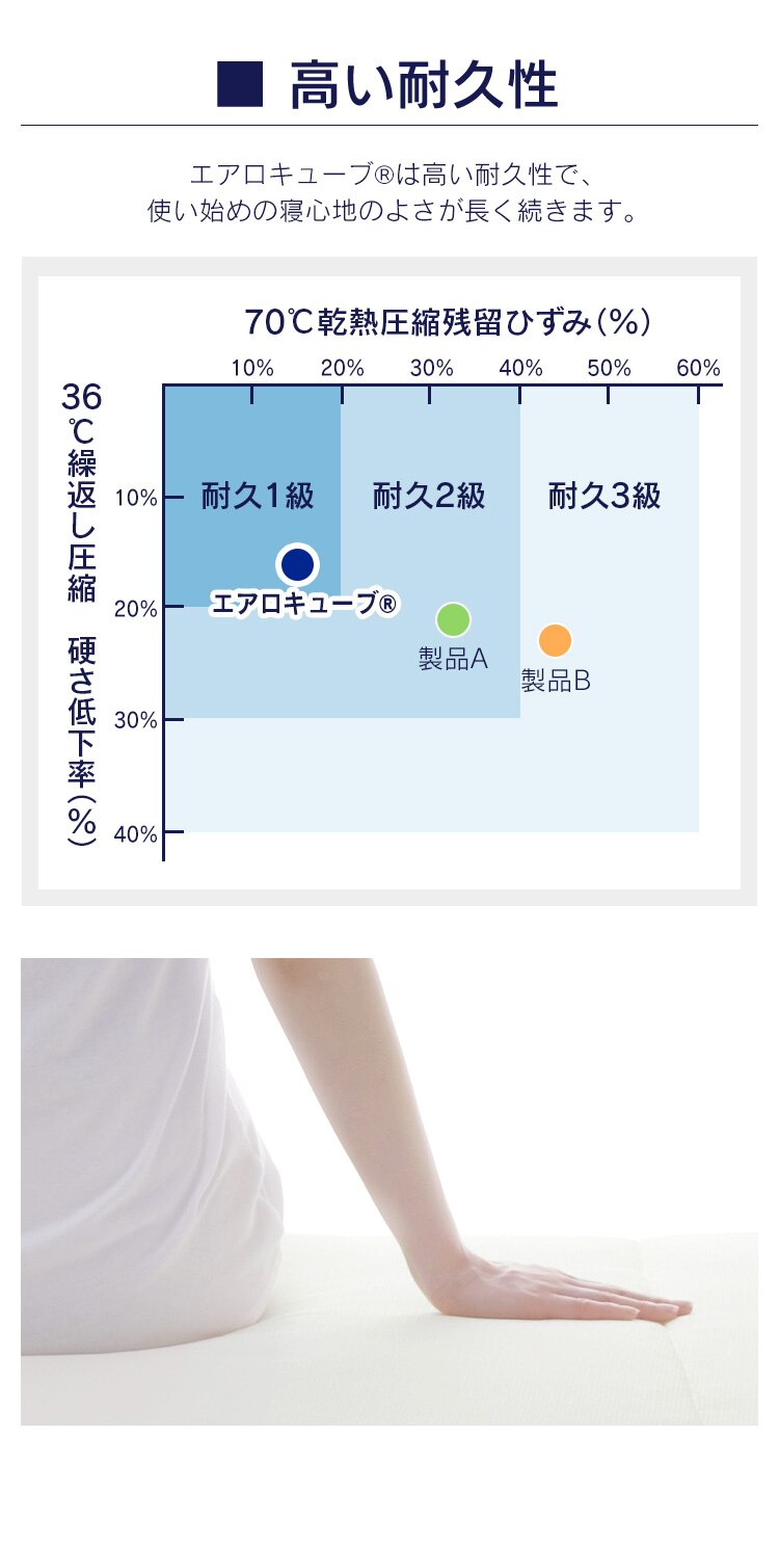 耐久性に優れており、毎日お使いいただいても弾力性が持続します。