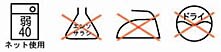 液温は40゜Cを限度とし、洗濯ネットを使用し、洗濯機の弱水流または弱い手洗いしてください。
