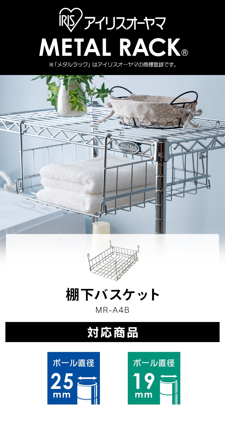メタルラック 棚下バスケット MR-A4B (ポール直径25mm・19mm)