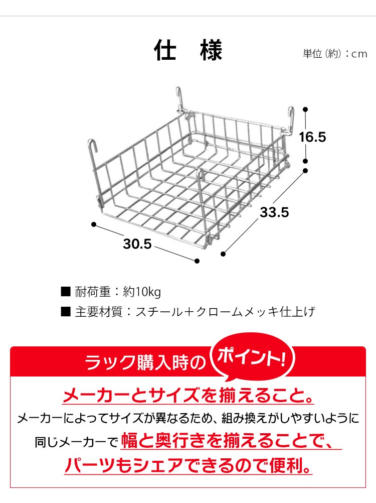 - キッチンに置いているメタルラックの無駄部分を解消したくて購入しました。玉ねぎがちょうどよいです。安定もしており早く買えば良かったと思いました。