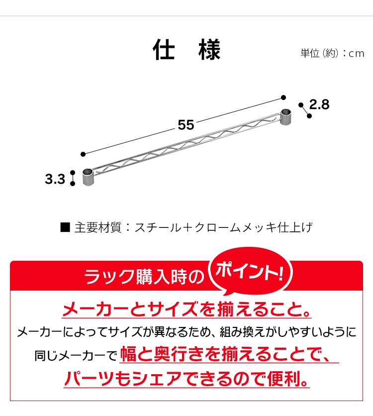 - メタルラック ミニ サイドバー 幅55cm MTO-55S (ポール直径19mm)