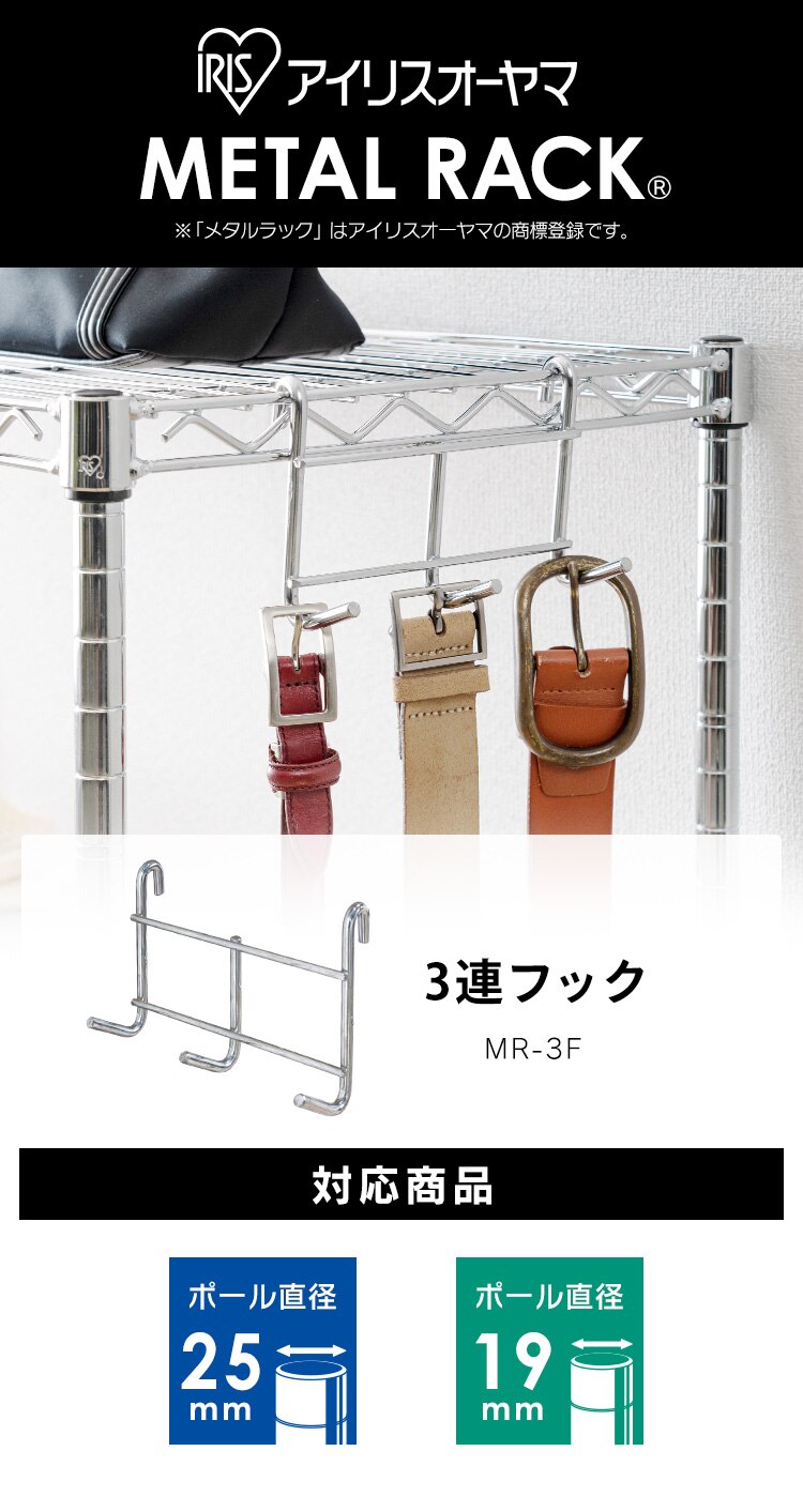 メタルラック フック 3連 MR-3F (ポール直径25mm・19mm)
