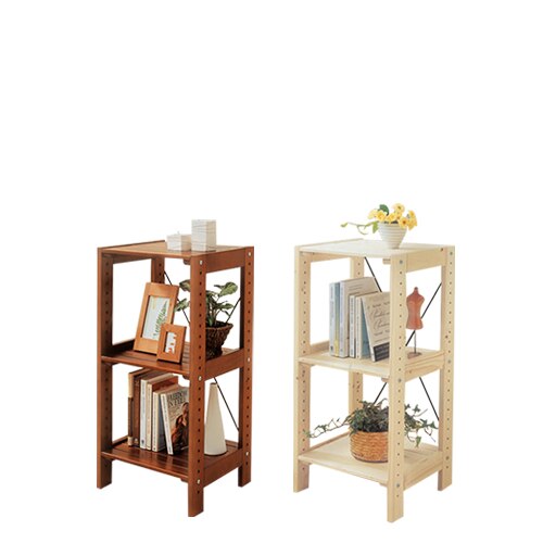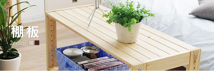 ナチュラルテイストのインテリア性の高い木製ラックです。カラーは、天然木の風合いを活かしたクリアと、木目を生かした落ち着いたイメージのブラウンから選べます。