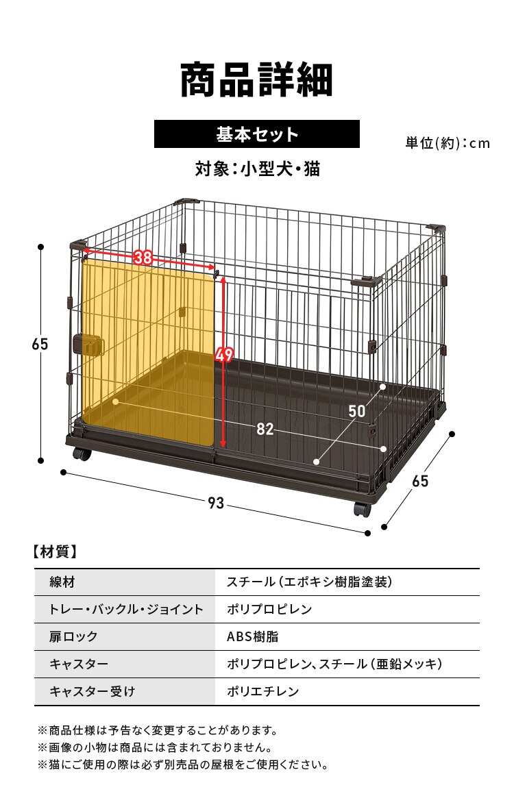 ※ペットの年齢や種類・性格・個体差により、線材のすき間にはさまったり、逃げてしまうおそれがあります。十分に注意してご使用ください。