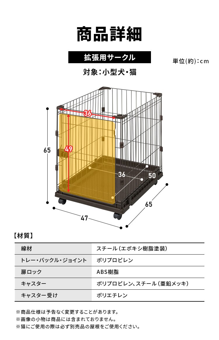 ※ペットの年齢や種類・性格・個体差により、線材のすき間にはさまったり、逃げてしまうおそれがあります。十分に注意してご使用ください。