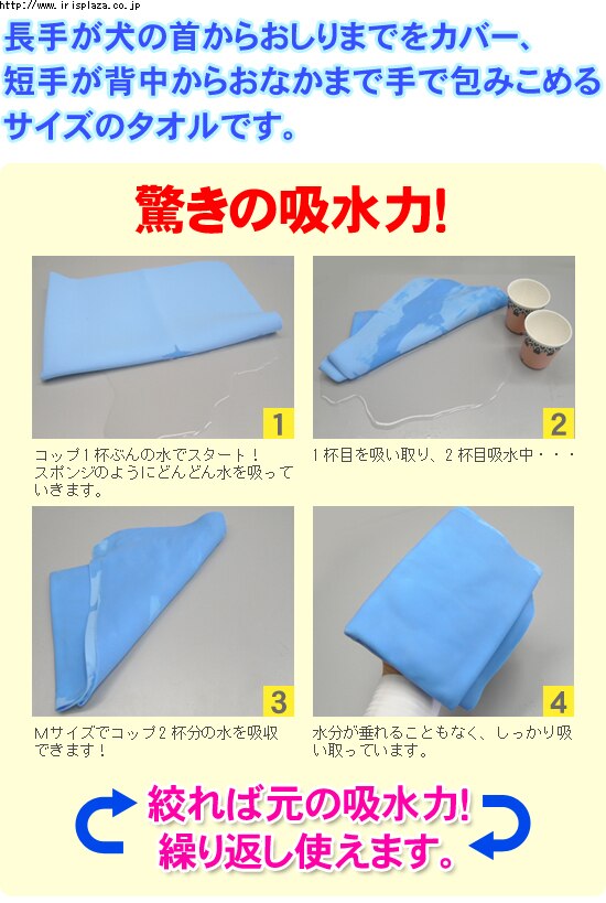 吸水力に優れ、シャンプー後や雨の日のペットの体拭きに最適です。