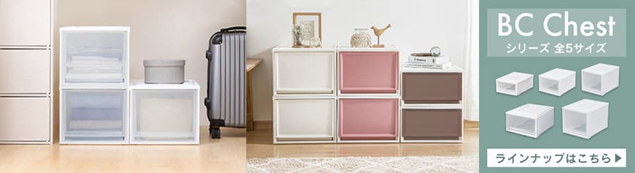 今までプラスチックのチェストと言えば押入れの中・・・との印象があったのですが、こちらの商品は高級感もありリビングに置いても違和感がありません。