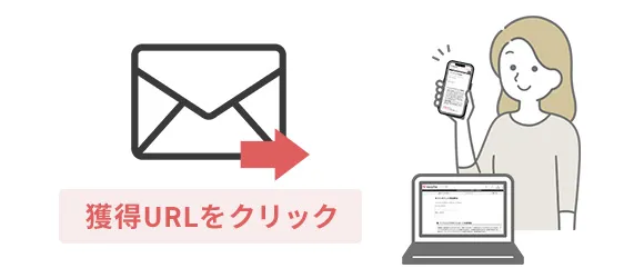 獲得URLとPINコードをご案内 - 届いた獲得URLとPINコードを、
