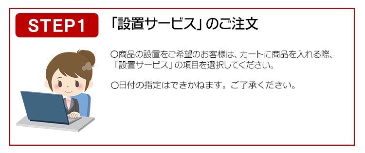 ●設置サービスをご希望の場合は、商品をカートに追加の際「あんしん設置サービス」の項目から、「あんしん設置サービス〜」を選択してください。