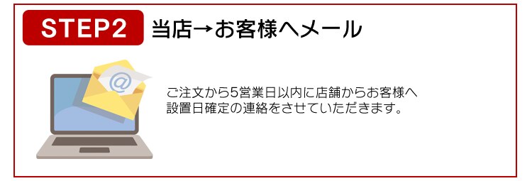 ●ご注文から5営業日以内に、店舗からお客様へ設置日確定のメールをお送りします。