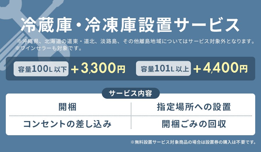 開梱設置サービスは商品のお届け後、開梱・設置(コンセントの差し込みまで)・開梱ごみの回収までを代行するサービスです。