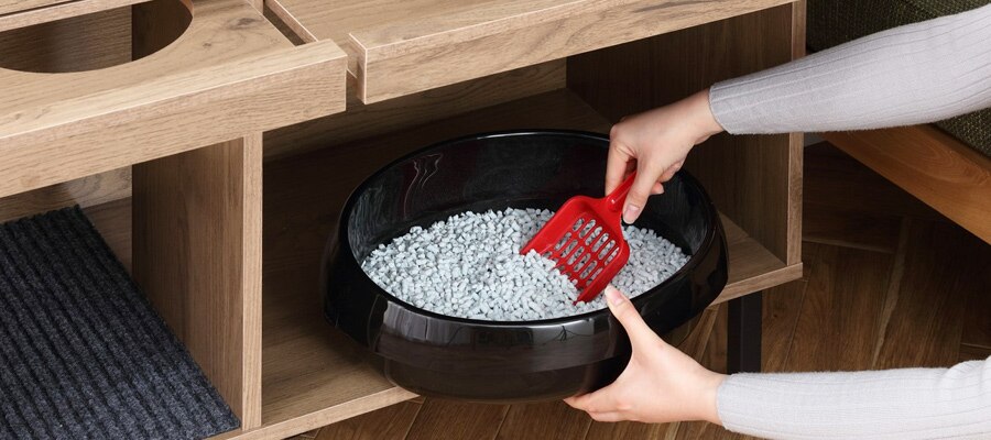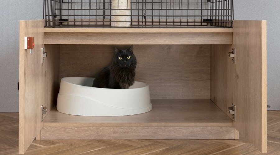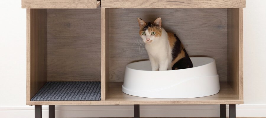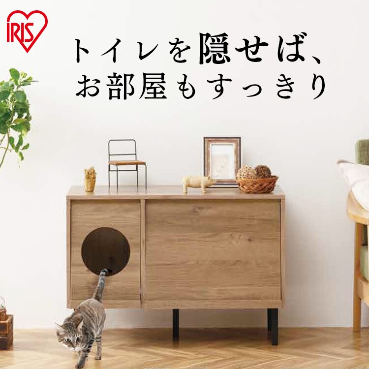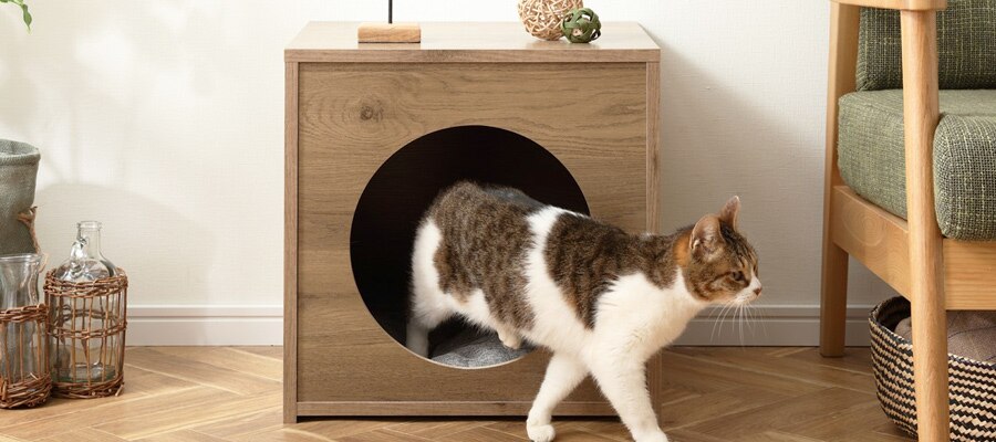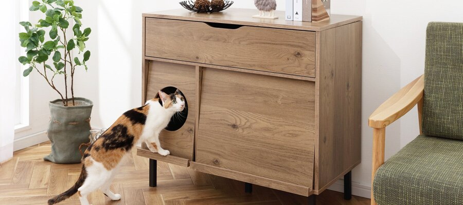 インテリアに馴染むデザインで、猫トイレをさりげなく隠します。猫砂の飛び散りも防ぎます。