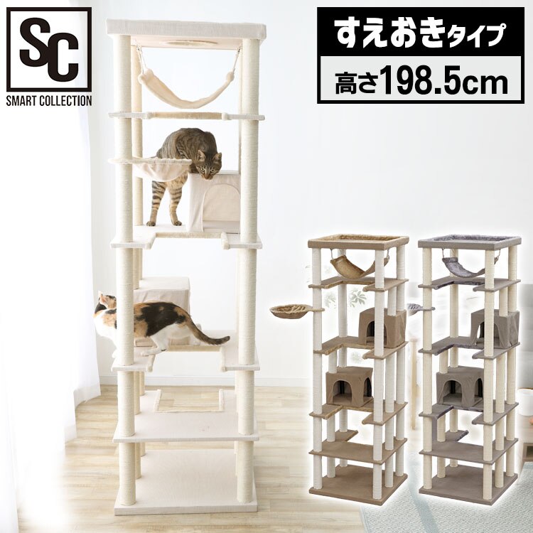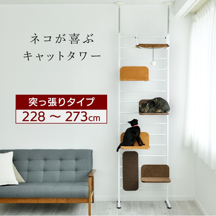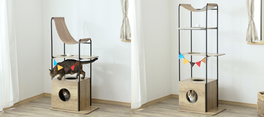 キャットタワーやハンモック付きで楽しいインテリアに。